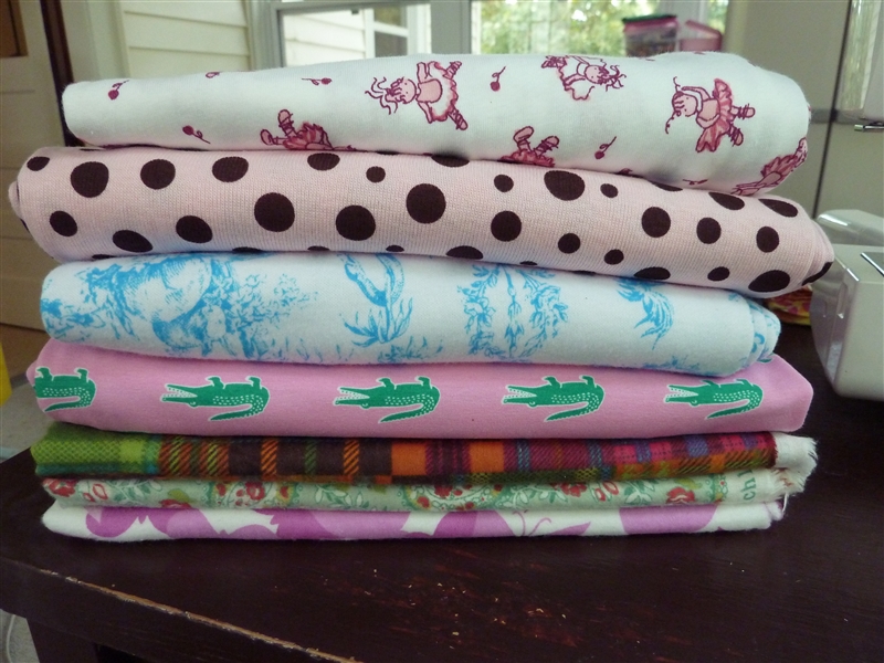 Little has informed me that the pink with brown polka dots will be her first pair of jammies and I have even found it on, under and beside my sewing machine on multiple occasions!