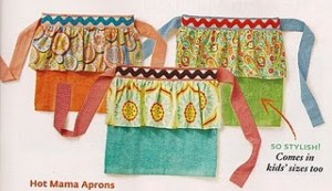 Then there’s the gift I made today and I’m excited. I can’t remember how long ago it was that someone (my mom or another friend) gave me an clipping from Southern Living which showed a half apron made out of a dish towel and ruffles. Oooh, after a quick Google search it seems it was July 2010 that it was given to me and here’s the photo: