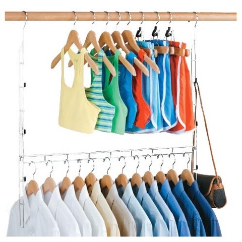 For ages now, ever since she could dress herself, I have been trying to figure out how to rig something in Little’s closet so that she could reach her own hangers. The device I would need seemed simple enough, but it would require Honey cutting a dowel rod and constructing two hangers to dangle and hold the rod.