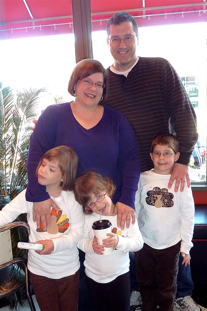 Funny thing, we had a very similar Thanksgiving, but not by choice. Tom & I came down with the stomach flu Monday morning (a 12 hour bug), and in turn our 7 year old, Nathaniel, starting literally barfing his guts out at midnight Tuesday night. We were going to host my family (a total of 19 of us) on Thursday, but ended up having to cancel, especially since if Jeannette & Garrison were to get sick, it would have happened at noon on Thanksgiving. Nathaniel was still getting over dehydration Thursday morning while Tom & Jeannette ran the Run for Food 5K. Jeannette got invited to join a friend’s family for turkey dinner, so we took the boys to see The Muppets, and then went to one of our local diners to eat.
