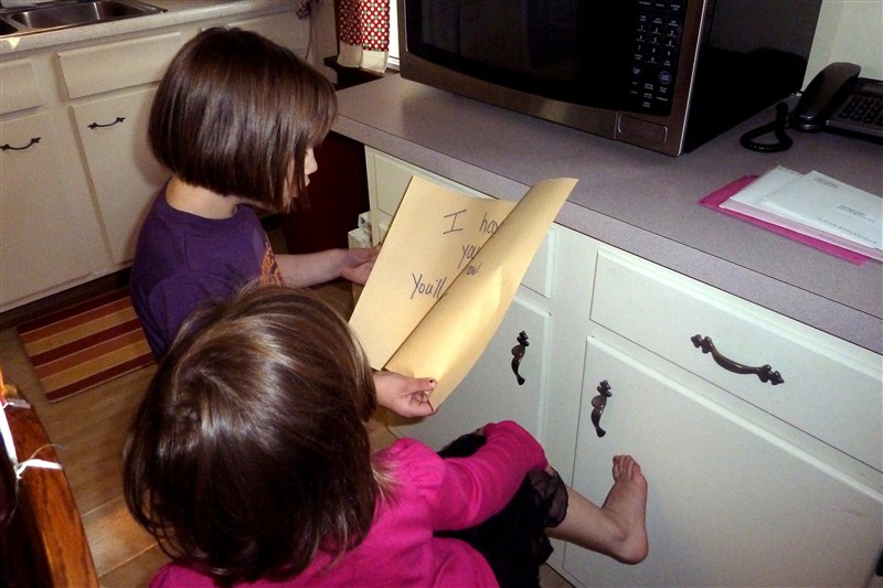 Instead of candles she found a letter, which her sister quickly read to her: