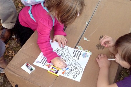 Anyway, KB chose the correct path through the Lollipop Forest and we made it to the Counting Bridge.   Here they found a coloring sheet that they had to color the numbers 1-10 while counting in Spanish.  Where would they find crayons? “Backpack!!”