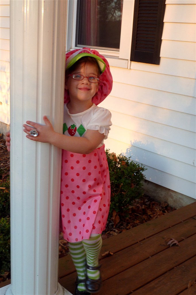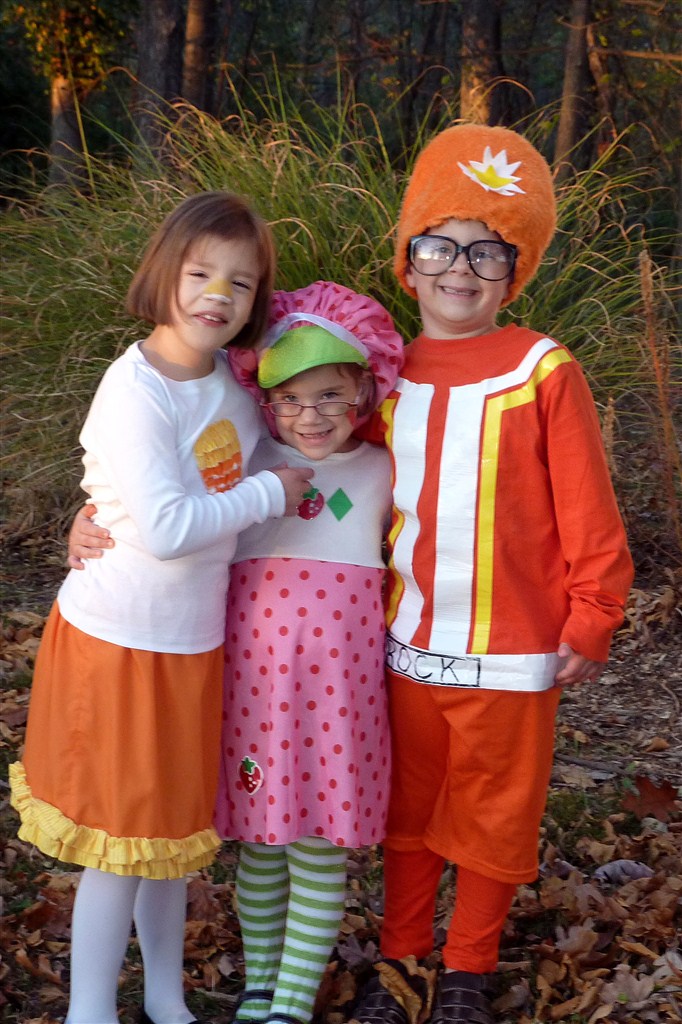 Then came Halloween. We had been talking for months about Little being this flamingo but all it took was one boa near her neck and there was a need for new plan. The feathers were a sensory nightmare and I wasn’t about to force it on her. So, she ended up being a candy corn, Bubba was DJ Lance Rock from “Yo! Gabba Gabba!”, and KB was Strawberry Shortcake. Such a cute crew!