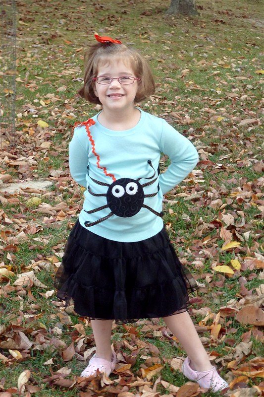 So you see KB in her candy corn outfit and you have seen her little spider ensemble: