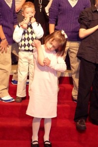 There was a little bit of this too, but overall there was singing. . . and dancing. . . and waving at random people in the congregation.