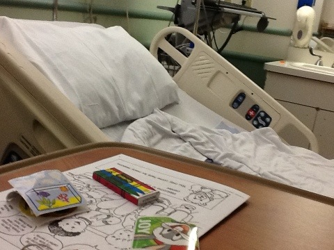 They just took him away in a Radio Flyer red wagon. He gave me a kiss and said in a slurred voice, “I love you, mommy.” And now I am crying. Watching people in scrubs wheel your child away isn’t fun or easy; no matter how many times you do it.