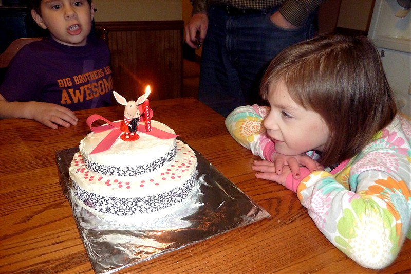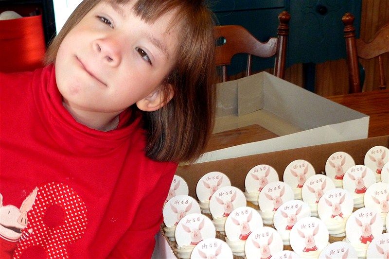 We had a birthday at the blue hutch and if you have been around for any length of time you know that means a day of celebration – sometimes silly. Little turned 8 last Monday and told everyone she passed. I am surprised you haven’t already heard, actually. Anyway, 8 isn’t a party year but Little had been talking for months about wanting an “Olivia Birthday” (the piglet on Nick Jr.) and so we did our best to make it so. Bubba even got into the theme: