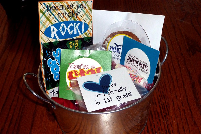 Each day the child finishing up came home to a bucket o’ joy and screams of happiness.  Everything is straight from Pinterest.  You can find links to everything from here.