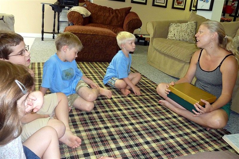 Thursday we looked at the parable of the lost sheep. The kids all sat and listened to Regan tell the story and watched as she moved the figures she had around the field of green felt. After listening nicely and only “correcting” her once (thanks, KB), the kids each had an opportunity to retell the story and move the sheep and shepherd.