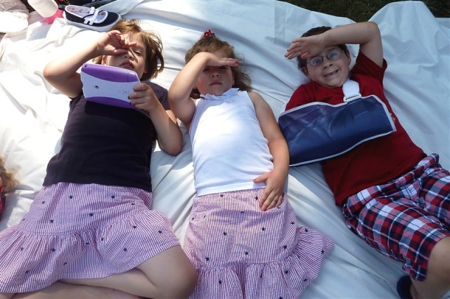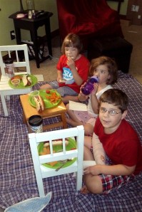 Once I walked them through filling their own plates and got them one step closer to leaving home and living independently, we had a picnic in the den on the floor.  Did I mention it was HOT outside? (At this point in the summer we had already experienced 12+ days of temperatures over 105! I can’t find a stat for what it’s been all summer.)