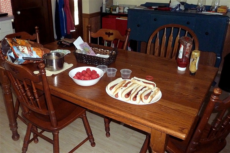 I tried to put together as close to a normal July 4 meal as possible and even laid everything out for the kids to serve their own plates buffet style.  They did NOT know what to think of that. . . spoiled little babies.