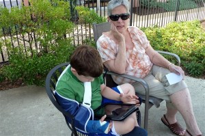 You may be wondering where Bubba was during all this fun. . . right here with Memom.
