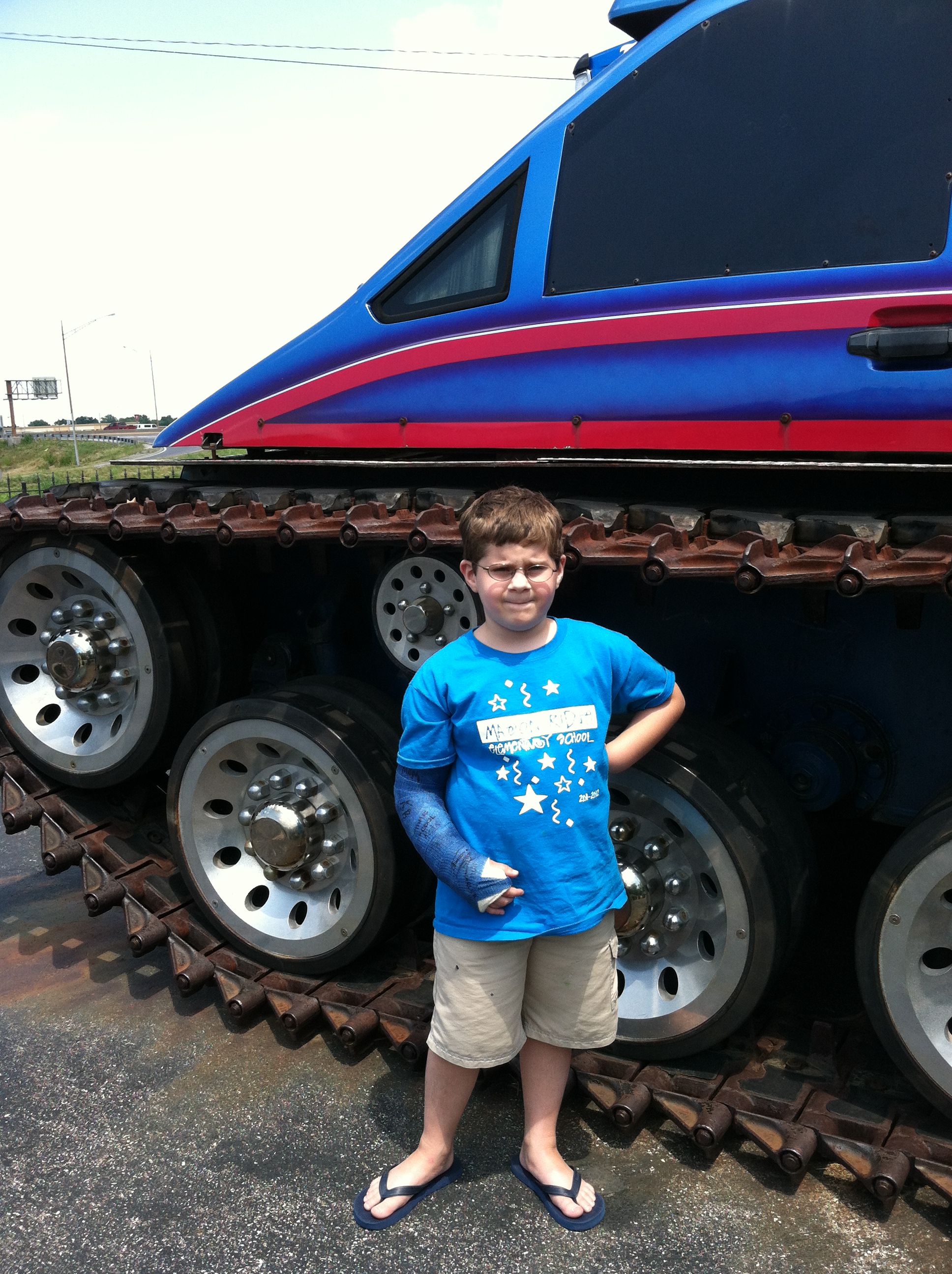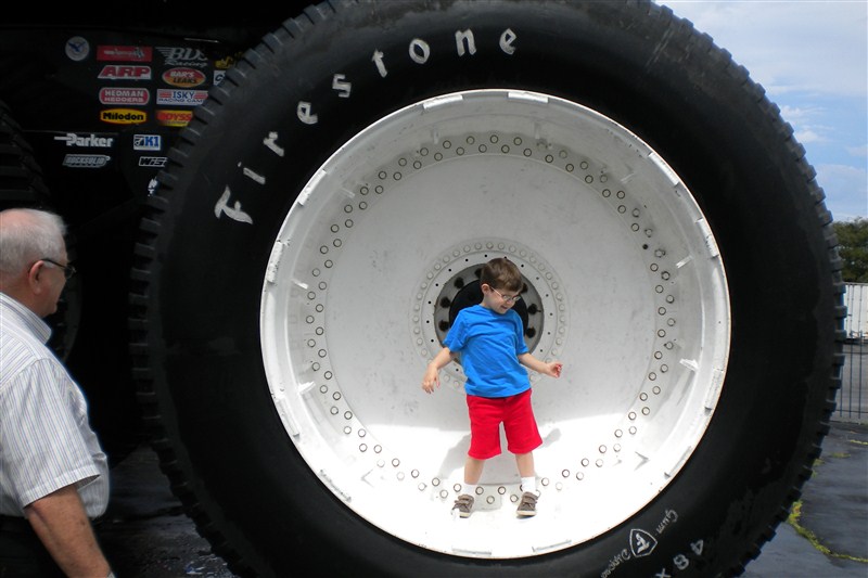 Bubba was up next and he had asked if he could go to the Monster Truck store with Pop to replace the monster truck that KB had broken. His grandparents were happy to oblige. First they took him to Steak and Shake for lunch and then it was off to see the Monster Truck! (this year’s photo beside 2010’s photo)