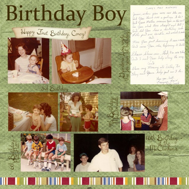 I was hired this summer to make a memory book for my sister’s brother-in-law. Her mother-in-law asked me to do it and organized everything so well. It was a BLAST to put together and has got me to thinking that I should offer my services to others for this type of thing. I L-O-V-E to scrapbook and others . . .don’t. What a great service, eh?