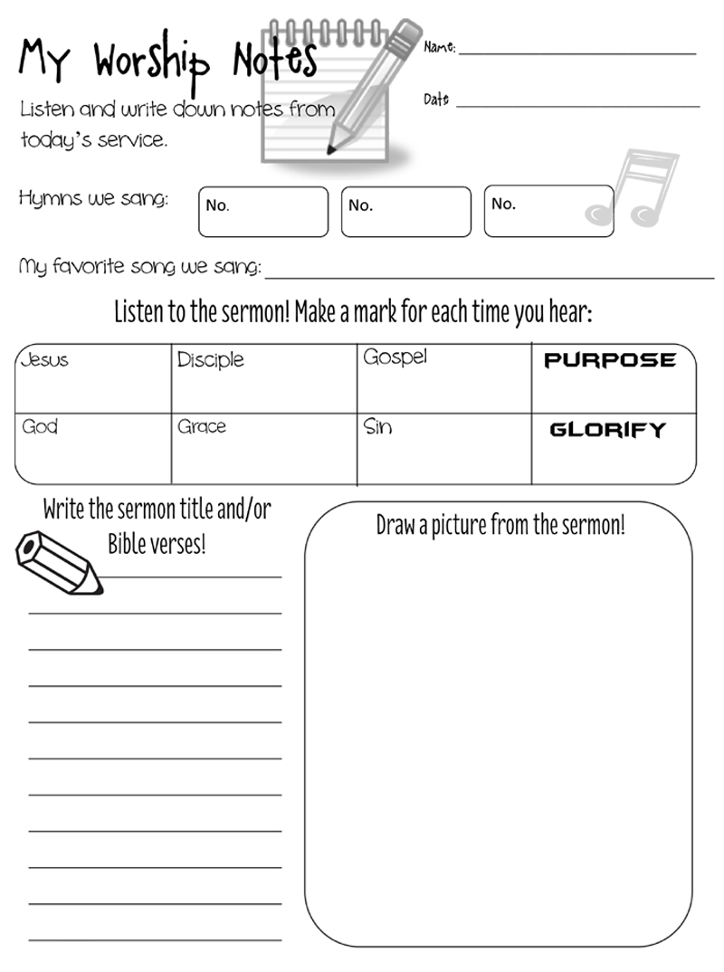 while sitting on the second pew in North Carolina, “You can draw but it has to be about something your Father is preaching about.” As I was reminiscing/thinking, I remembered a tool from Pinterest that a woman had created for her own children’s church experience. I clicked right over and used this as an example and inspiration for a sheet of my own.