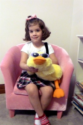 In doing this post I have realized that KB is missing three years of duck photos (yes, she is only five) and Bubba is missing two. . .I must have really had my hands full to have forgotten. Chalk it up to just more proof that I need Jesus and we’ll, instead, comment on the amount of personality my daughter is displaying in this latest photo. Socks that don’t match (of course) and sunglasses on the duck. Oh, and there’s the purse she has on her shoulder that is full of little dolls to take in the car. I love this girl.