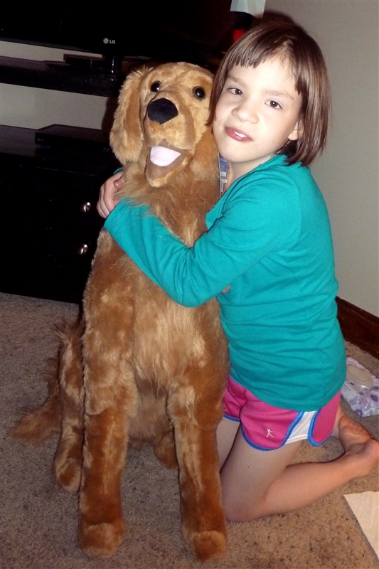 Meet Freddie Trievy Kicklighter. . . Little’s new golden retriever. Yes, he is made by Melissa & Doug. No, he can’t run or bark. Yes, he is our solution to the problem of no pets in a rental. She was beside herself. She wanted him right beside her as she opened presents. He slept beside her bed through the night. He came down for breakfast with her this morning. SO SWEET.