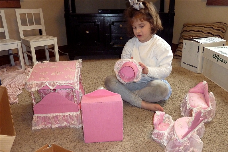 My mom sent this doll furniture up to KB. It was my sisters and I think somebody made it. I love this picture. I love seeing KB sitting their with a big bow, doll furniture, and those filthy knees on her leggings.