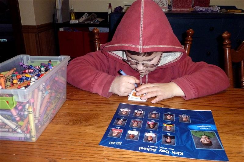The kids were in charge of the outsides. I gave them their class picture to look at so that no one was forgotten, and then they went to town drawing each classmate on the outside.