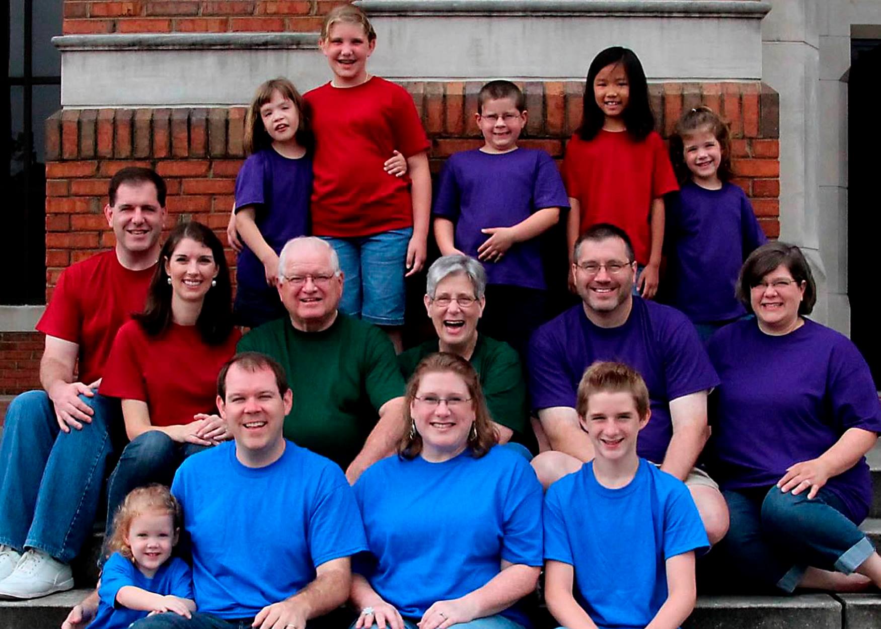 Every couple of years we get to see my brother and his family.  I usually make a really big deal about it on here and show a gazillion photos while moaning about how big the cousins have grown and how much I want to go to heaven so I can be with family.  I bet some of you don’t even realize that we spent a week in Birmingham with my extended family this past July – yep you – – the one reader who isn’t IN Birmingham.  You didn’t know, did you?  Well we did . . . and we took pictures . . . the families are dressed in the same color.  See how we did that. . .