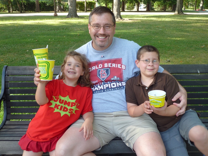 We tried to do things we find difficult to do with Little. One of our many outings that week found us at Ted Drewes getting concretes and then heading over to a new park where we climbed trees and played for an hour.