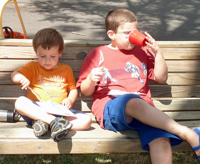 There isn’t much to say here. We were celebrating a friend’s birthday and Bubba was sitting alone on the bench eating his cake with purpose. This little guy saw a kindred spirit and climbed right up to join him. Yes, people, this bench is where the serious work was being done. No conversation, only comfortable silence and consistent chewing.