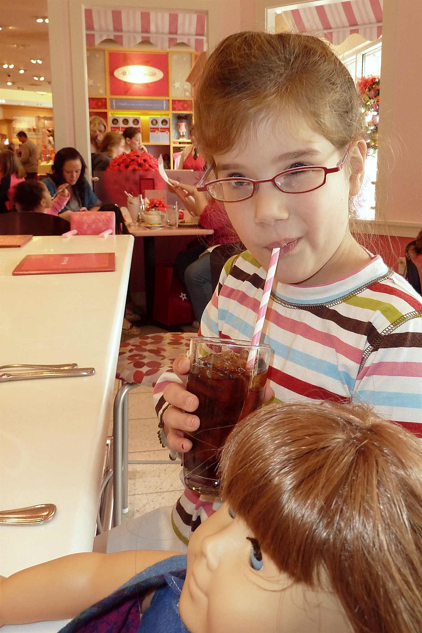 ????????I don’t know if you have been to an American Girl store but it was like Disney World for KB, complete with lines out the door and live characters to meet and talk to (ballerinas from St. Louis Ballet performed while we were there and then walked around chatting with girls about Isabelle, who is also a dancer). We walked through the store and picked a new outfit, made an appointment to have the baby’s hair done, and went to see if we would be able to have lunch.  We were seated right away and enjoyed watching the ballerinas while we munched.????????