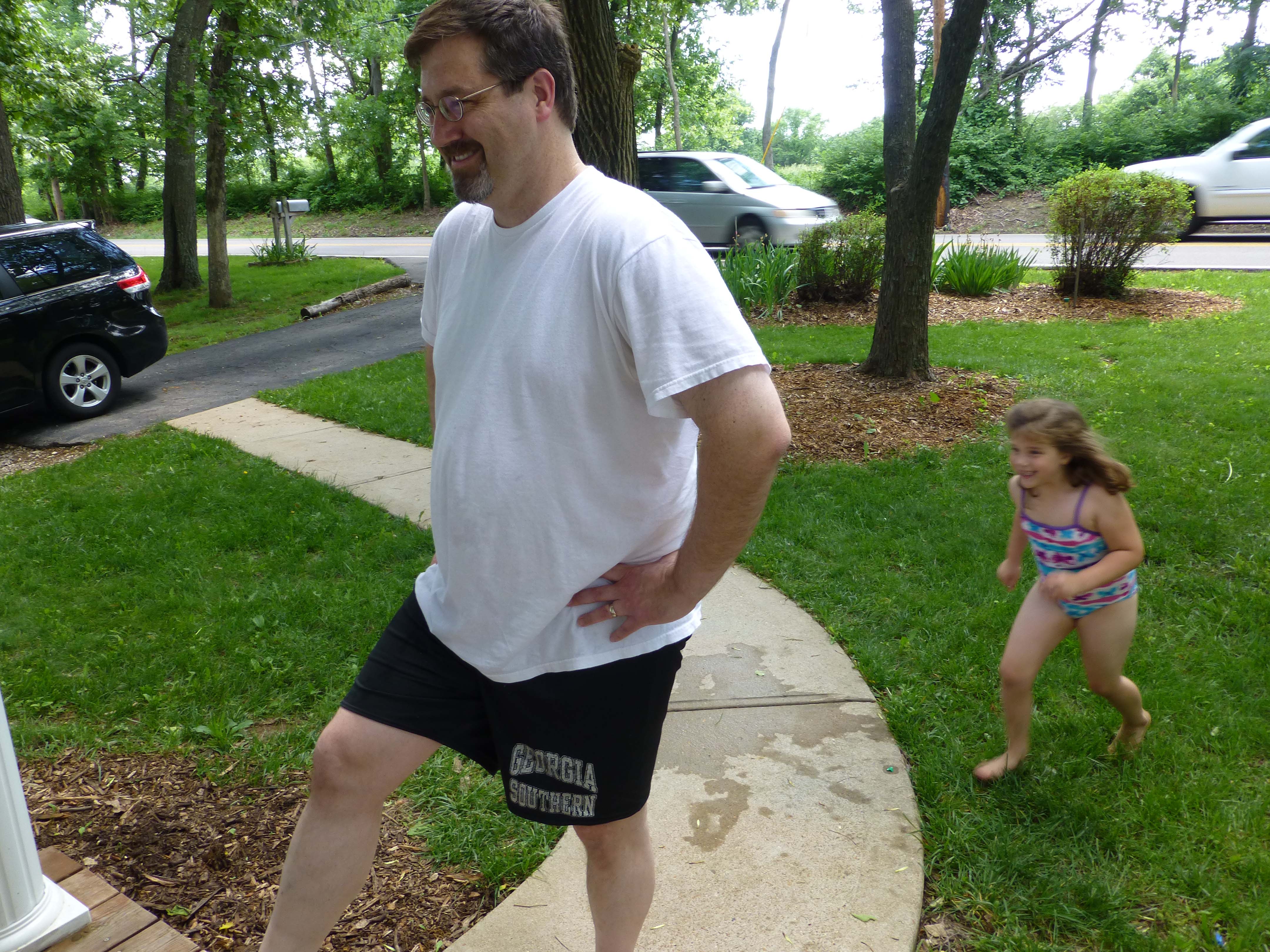 KB went grocery shopping with her daddy on Saturday. Sending Honey to the store always means that there will be something in the bag that wasn’t on the list, but I never expected a water-balloon-filling apparatus. I decided that he was the one that bought it so he was the one who got to play with it. I took photos. Looks like he had fun, right?
