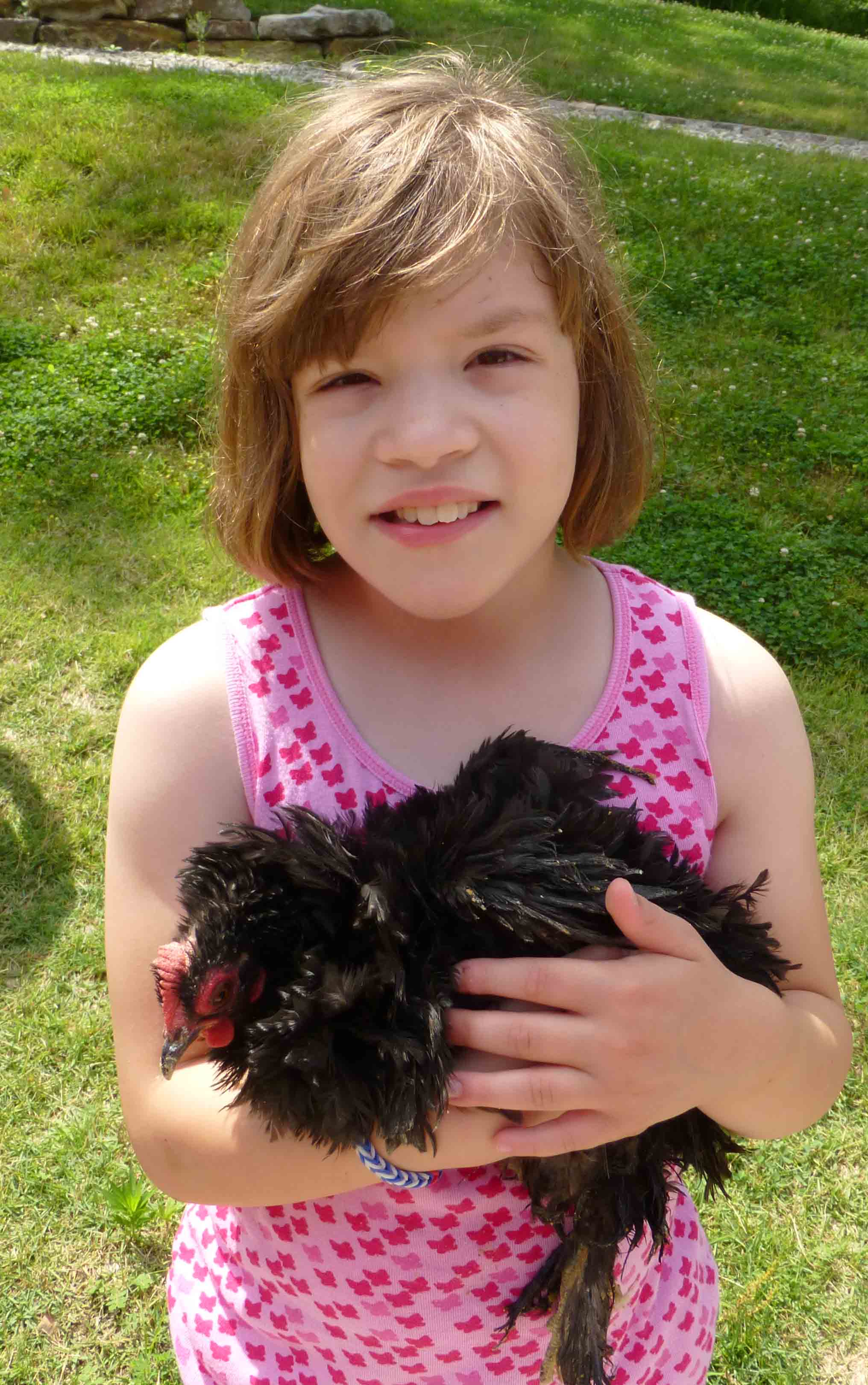 There were chickens everywhere and Lily followed some around the building and re-emerged holding one that she had chased down and caught by herself!!