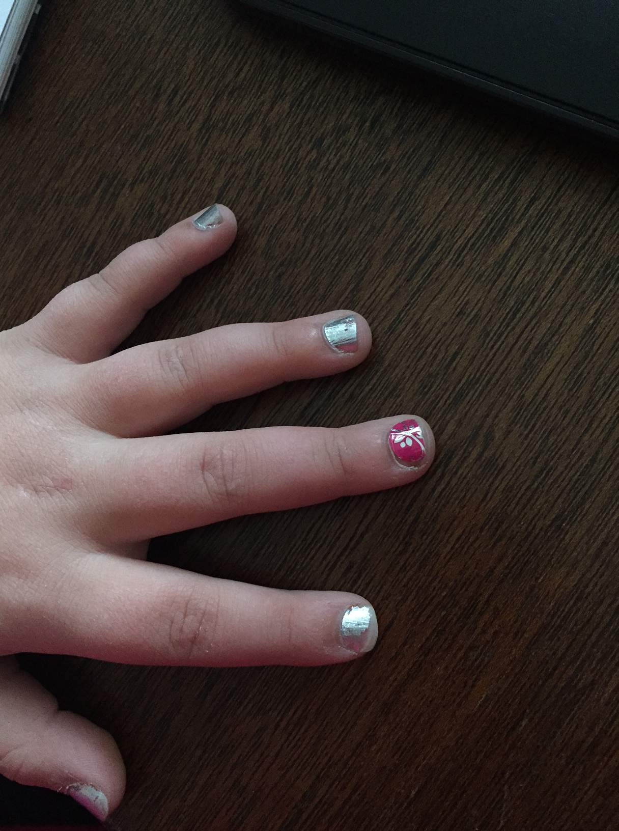 7. I’m selling Jamberry Nails. KB works for me – she stamps my letters. She is having a party in a few weeks for all the girls in her class and their mommies. I’m excited and terrified – she is just excited. We did her nails last night to start stirring up some interest. Ba-Bam! #polishdonebechippin’ #wrapisjamaZing